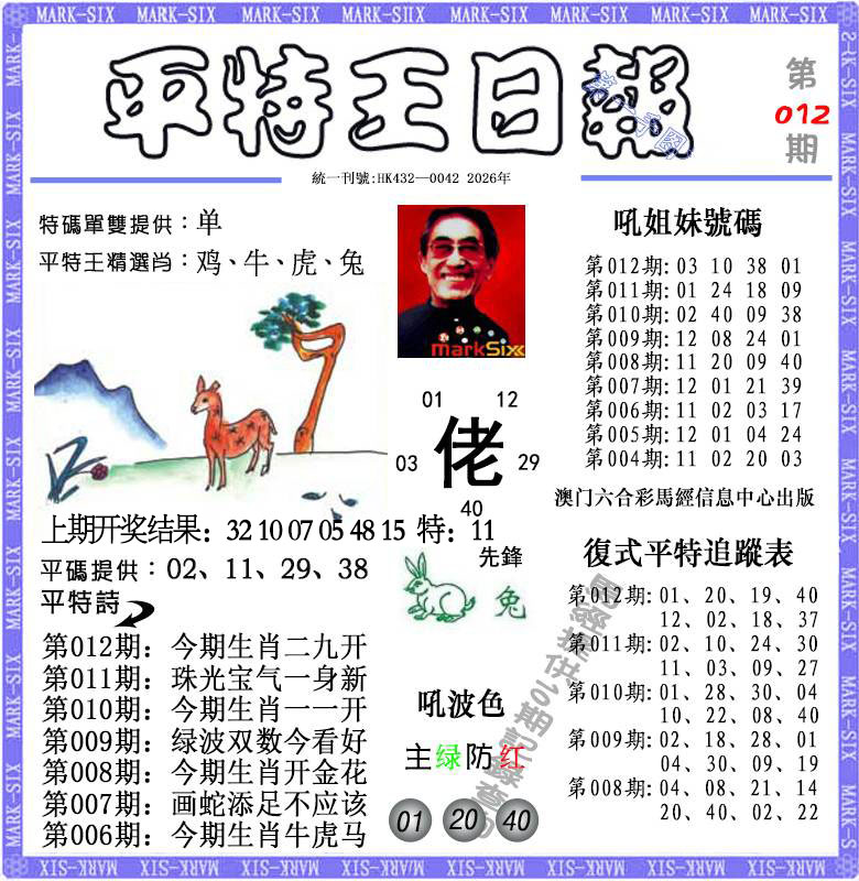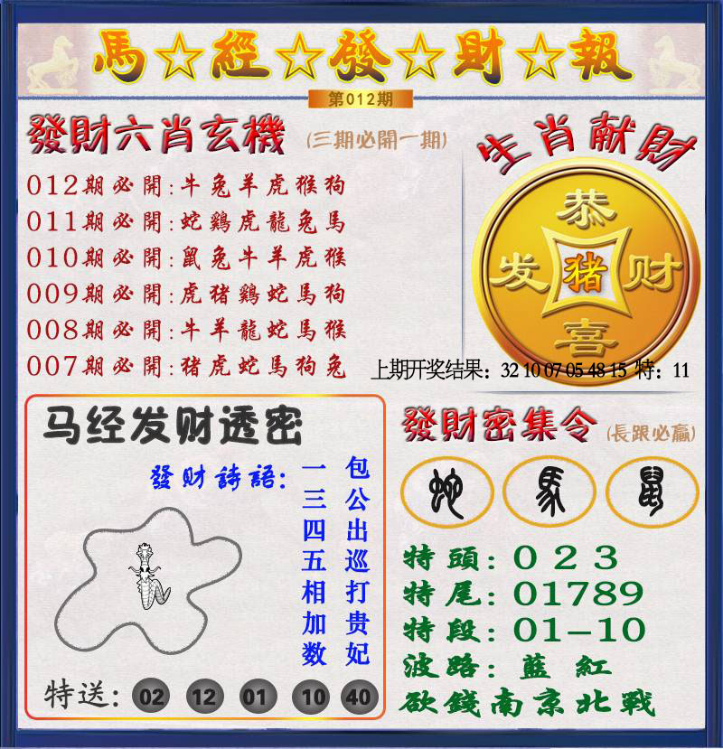 012期:横财神童★平特2 肖★39中38√ (历史记录) 作者:横财神童